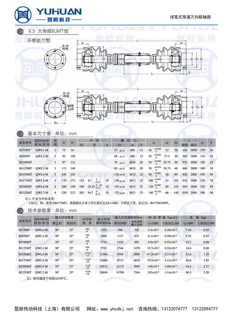 大伸缩BJMFT型球笼联轴器